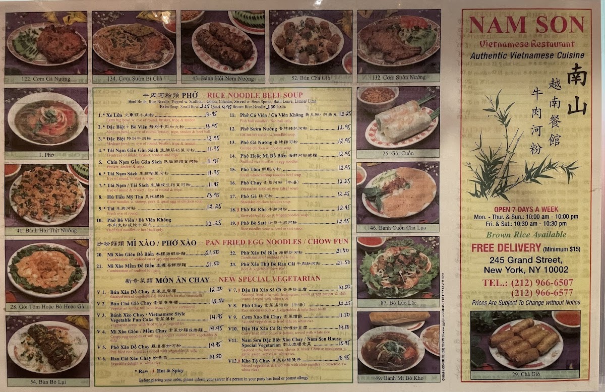 Welcome to Nam Sơn, your go-to destination for authentic Vietnamese cuisine in New York City! Nestled at 245 Grand St, this culinary gem specializes in delivering hearty, flavorful dishes that transport your taste buds straight to Vietnam.